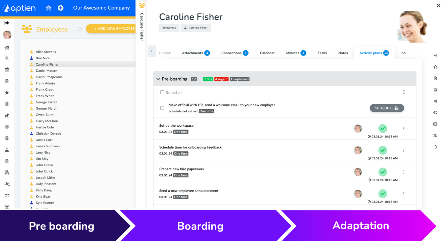 All employee information is available in one place on the employee record. You replace endless Excel sheets full of personal data, including records of handover equipment, job positions, vacations, and benefits.