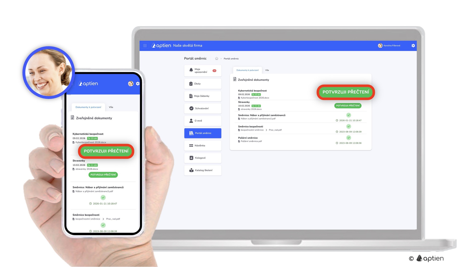 - Dokumenty a směrnice k přečtení a seznámení, kde jsou dokumenty čekající na vaše potvrzení