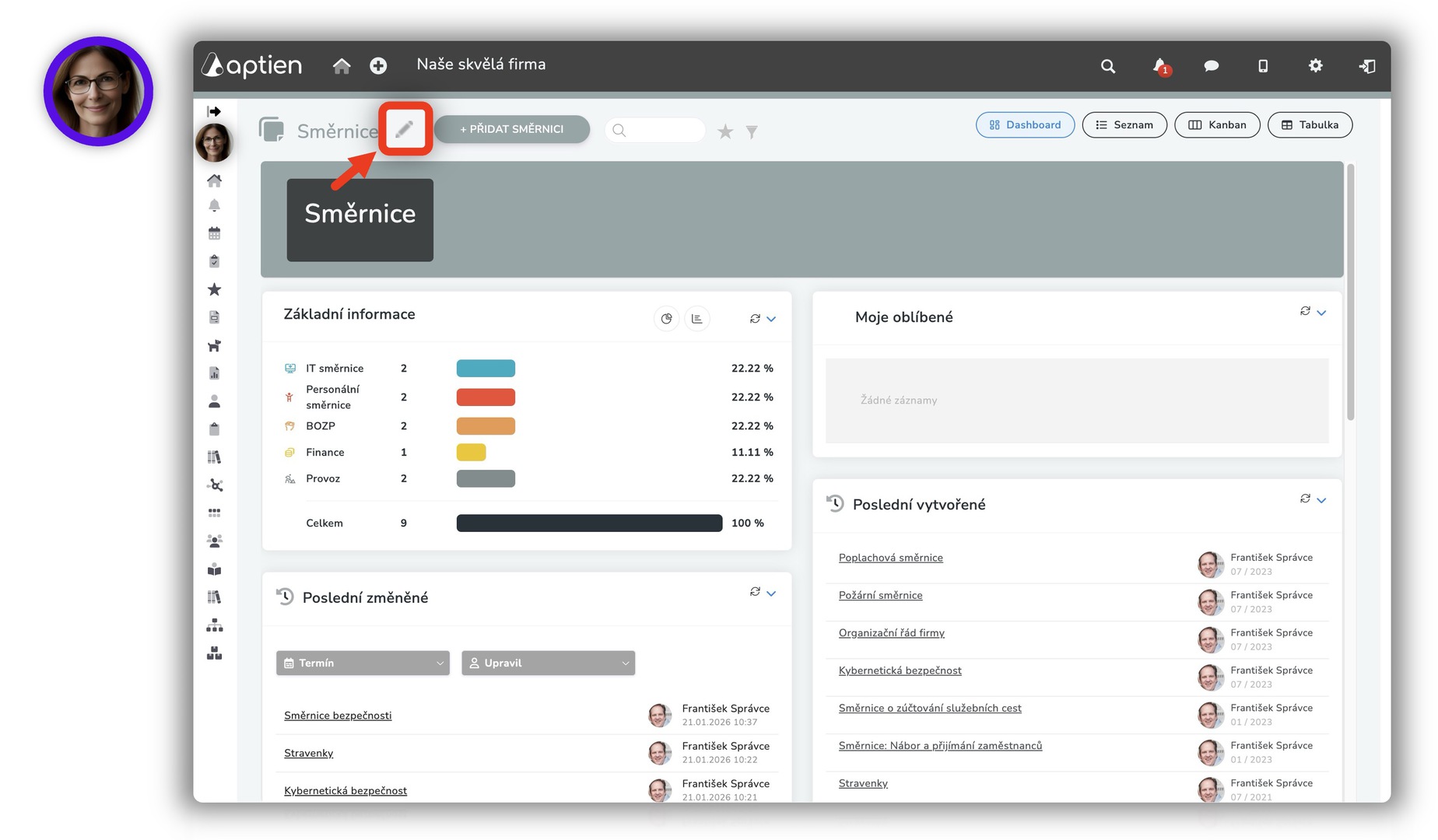 - Evidenci směrnic můžete následně přizpůsobit zvyklopstem vaší firmy