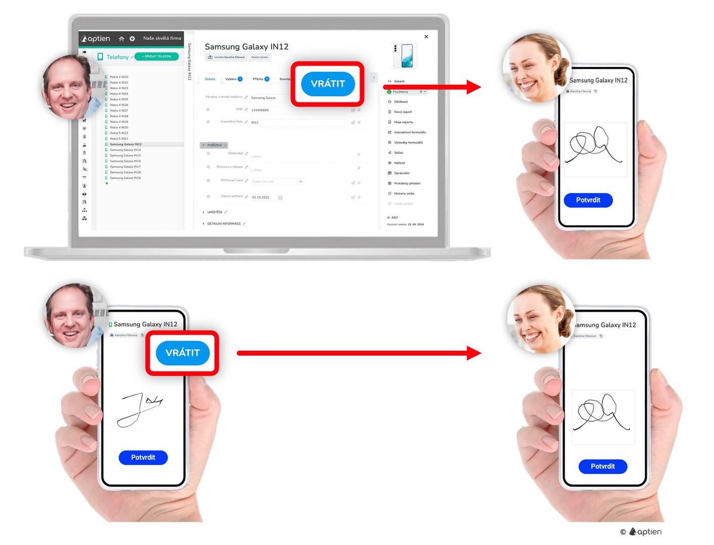 - Otevřete kartu předmětu, který chcete vrátit (například telefon)
