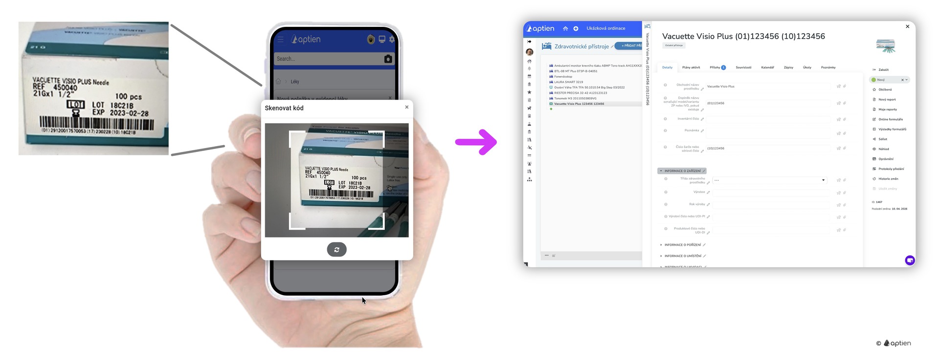 Jak funguje skenování UDI mobilem v Aptienu?
