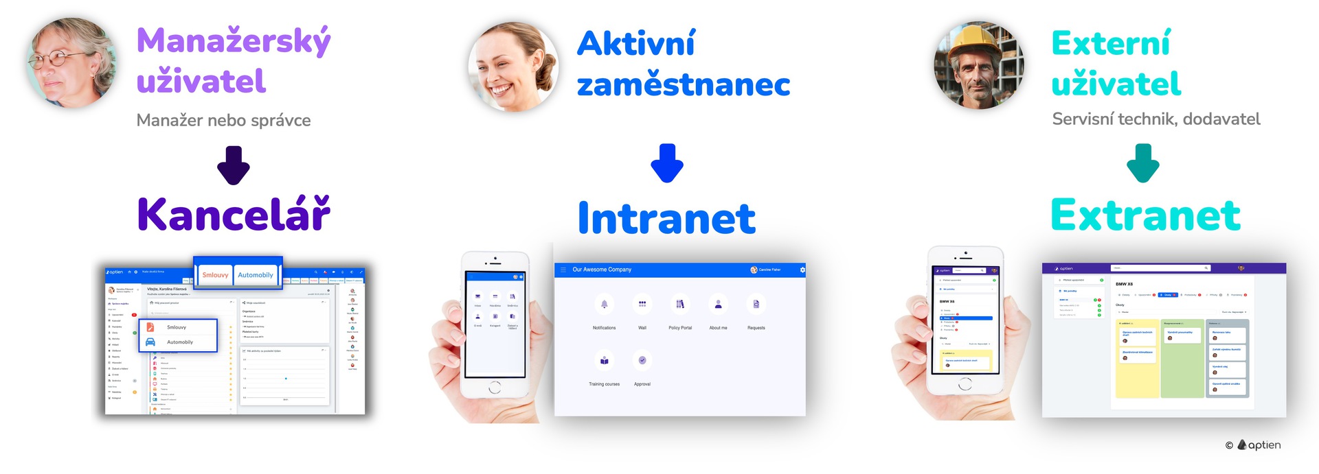 V Aptien jsou tři typy licencovaných uživatelů