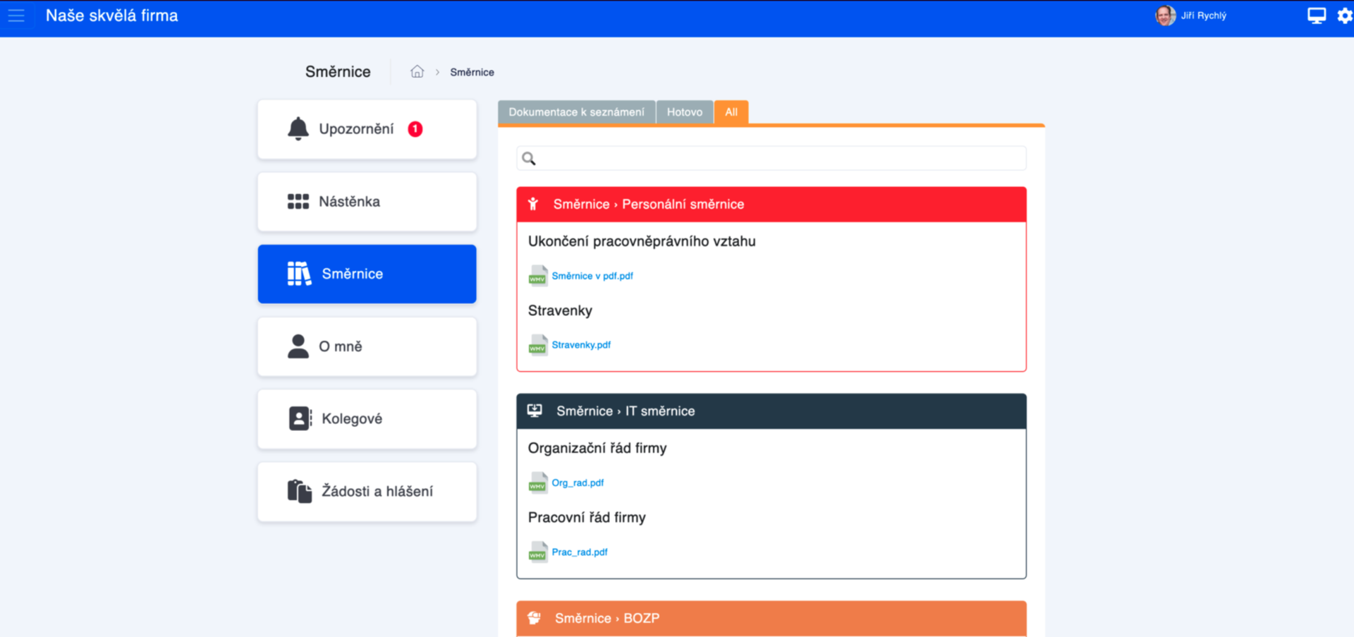 U dokumentů, u kterých je potřeba, aby zaměstnanec potvrdil, že se s nimi seznámil, lze směrnici přiřadit přímo jemu. Zaměstnanec ji vidí na portálu směrnic i ve svých úkolech a jednoduše potvrdí přečtení.