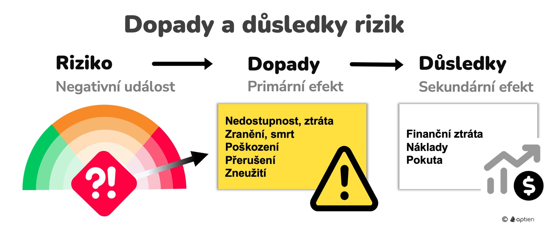 - Dopad je primární efekt rizika, tedy negativní události na procesy a zdroje firmy