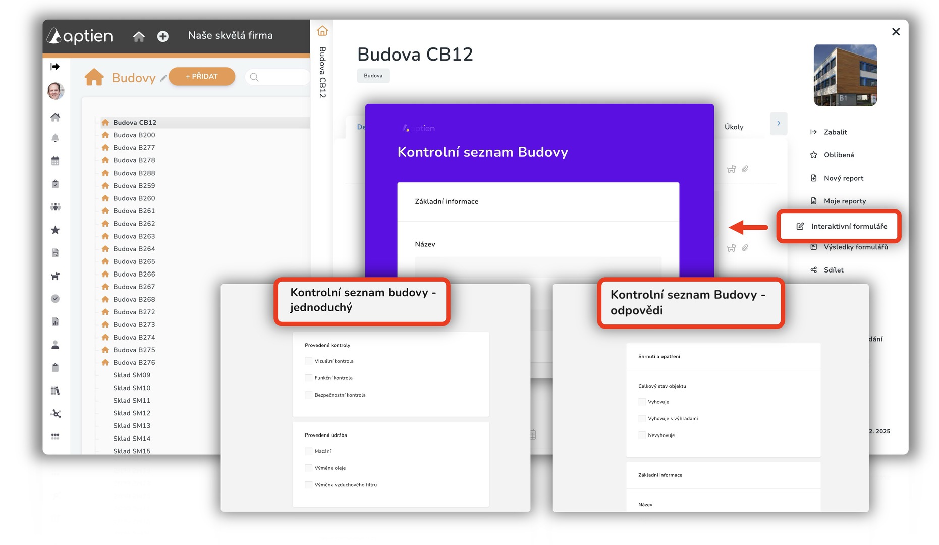 Kontrolní seznam budovy s odpověďmi