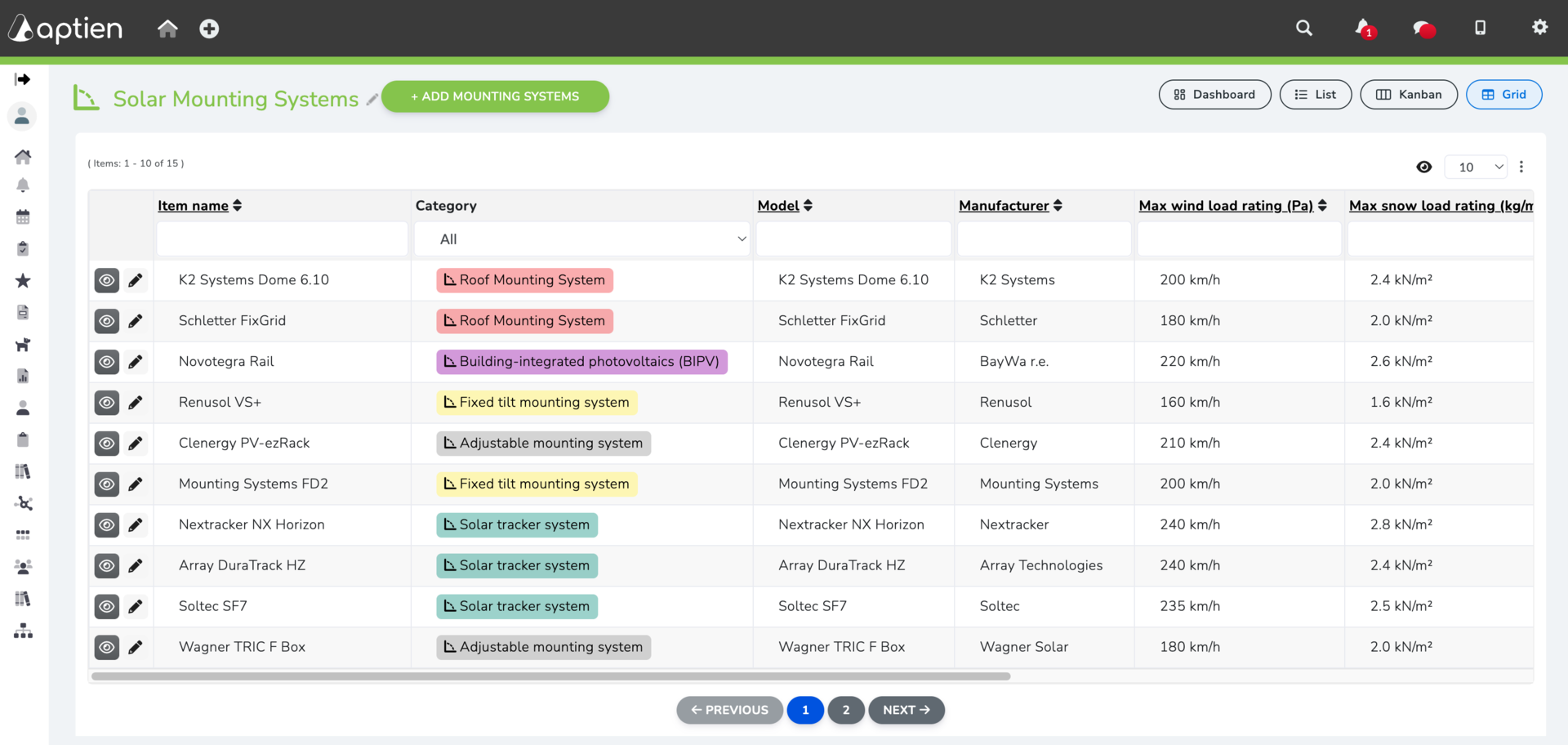 - For mounting constructions you've already mounted: Know which customers have them and which projects they were used in.