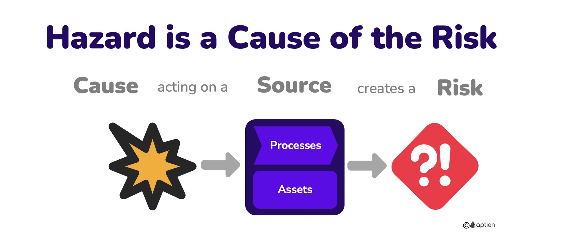 Sometimes “threats” and “hazards” are used interchangeably as sources of risk. In simple terms, they are “things that can harm assets, processes, or people.” Risk management professionals, however, make a clear distinction: