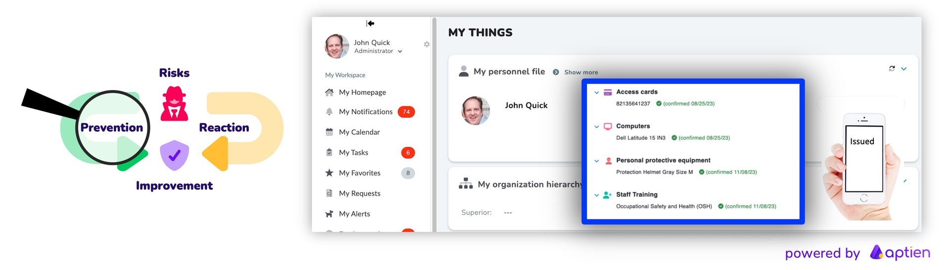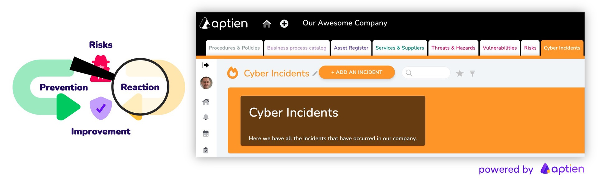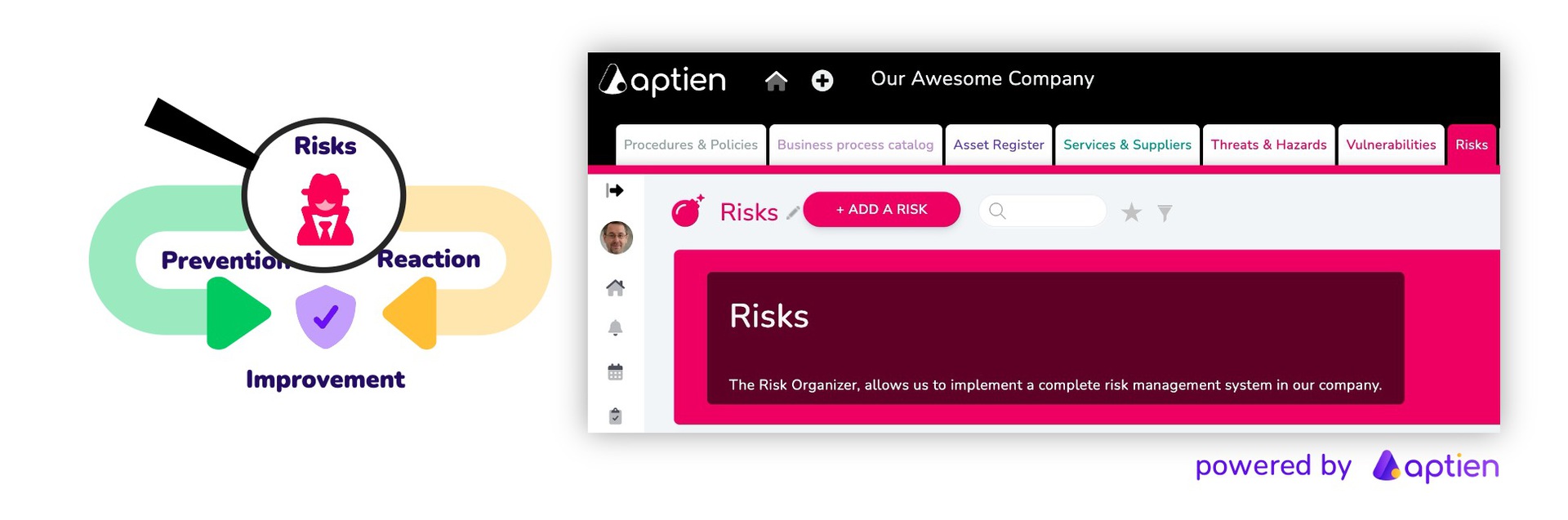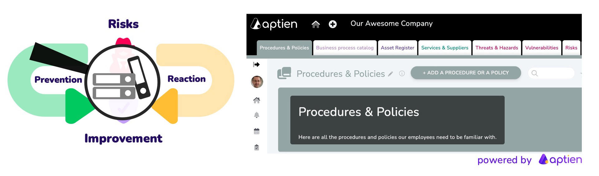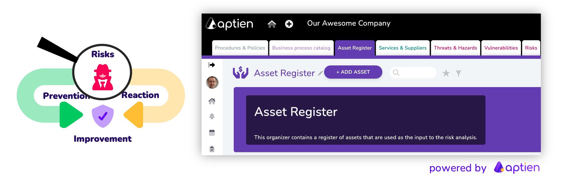 Aptien makes it easier to meet a large portion of your compliance obligations in one place. It supports risk management, complete compliance documentation, asset inventory, incident tracking, and managing corrective and preventive actions stemming from audits, risk assessments, or specific incidents. Aptien works as an integrated risk and compliance management system in a single environment.